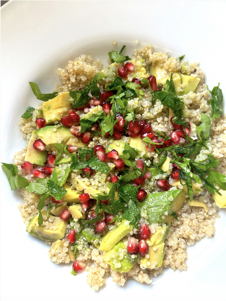 Fraîche, colorée et riche en nutriments, la salade de quinoa, grenade, avocat et persil constitue une recette idéale pour un déjeuner léger, un dîner sain ou un accompagnement original. Facile à préparer et végétarienne, elle allie l’acidité de la grenade et la fraîcheur du persil, le tout relevé par une vinaigrette citron-huile d’olive.